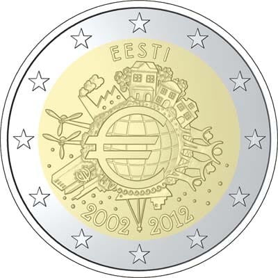 W styczniu 2012 roku dla upamiętnienia dziesiątej rocznicy banknotów i monet euro wszystkie państwa strefy euro wyemitują nową monetę okolicznościową. Jej projekt został wybrany w głosowaniu internetowym przez obywateli i mieszkańców strefy euro. Zwycięski projekt uznano za najlepszy z pięciu wzorów, które zostały wyłonione wcześniej przez profesjonalne jury w konkursie otwartym dla obywateli wszystkich państw strefy euro.