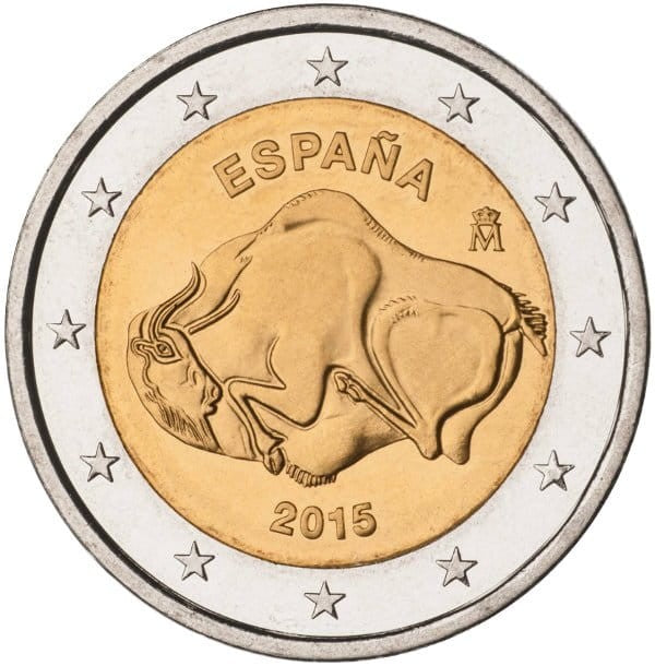 Opis: Moneta przedstawia bizona z rysunku w jaskini Altamira w Kantabrii. Powyżej biegnie półkolem nazwa kraju „ESPAÑA” (Hiszpania), wykonana wersalikami, z prawej strony znajduje się znak mennicy, a poniżej – rok emisji „2015”. W otoku monety widnieje 12 gwiazd Unii Europejskiej.