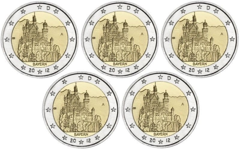 2 euro Niemcy x5 Bawaria Neuschwanstein 2012ADFGJ