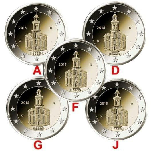2 euro Niemcy x5 Hesja - Kościół Pawła 2015 ADFGJ