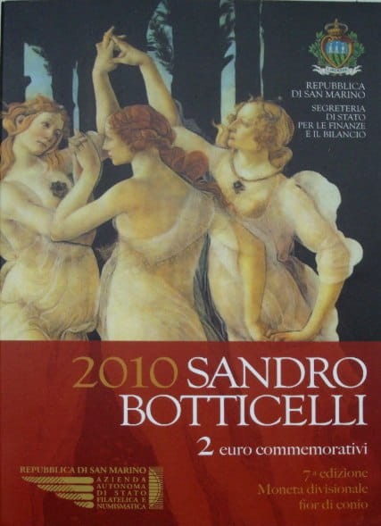 Opis: Moneta upamiętnia pięćsetną rocznicę śmierci Alessandra di Mariano di Vanni Filipepi (1445–1510), włoskiego malarza szkoły florenckiej, znanego jako Sandro Botticelli lub Il Botticello (wł. beczułka). W otoku monety widnieje 12 gwiazd Unii Europejskiej.