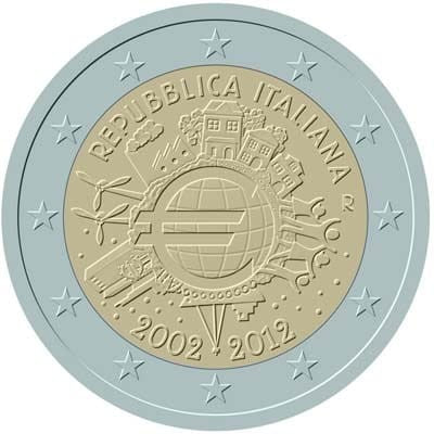 2 € Włochy 10 lat euro w obiegu 2012