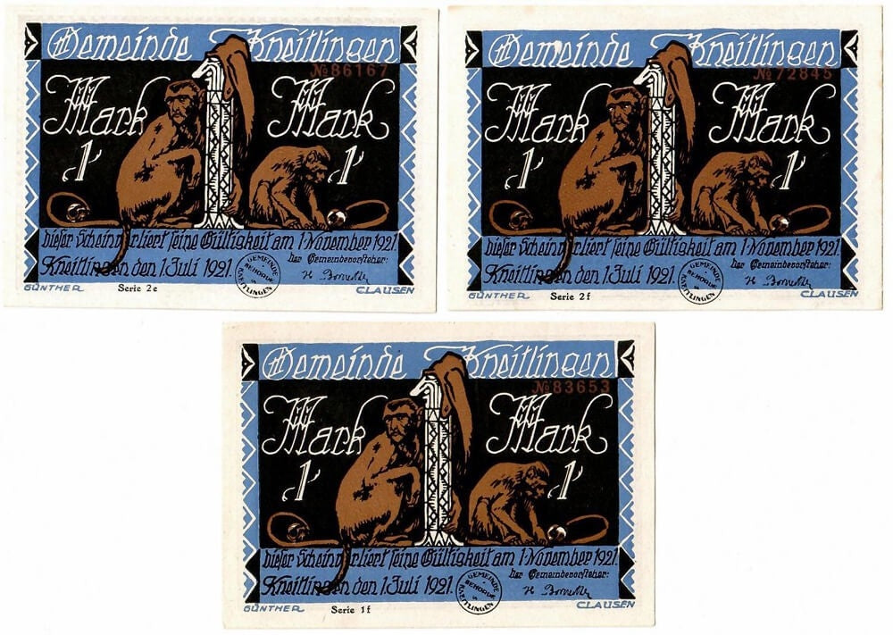 3 x 1 mark banknoty zastępcze Powiat Kneitlingen 1921