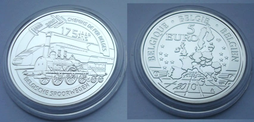 5 € Belgia 175 Lat Kolei Żelaznej w Belgii 2010