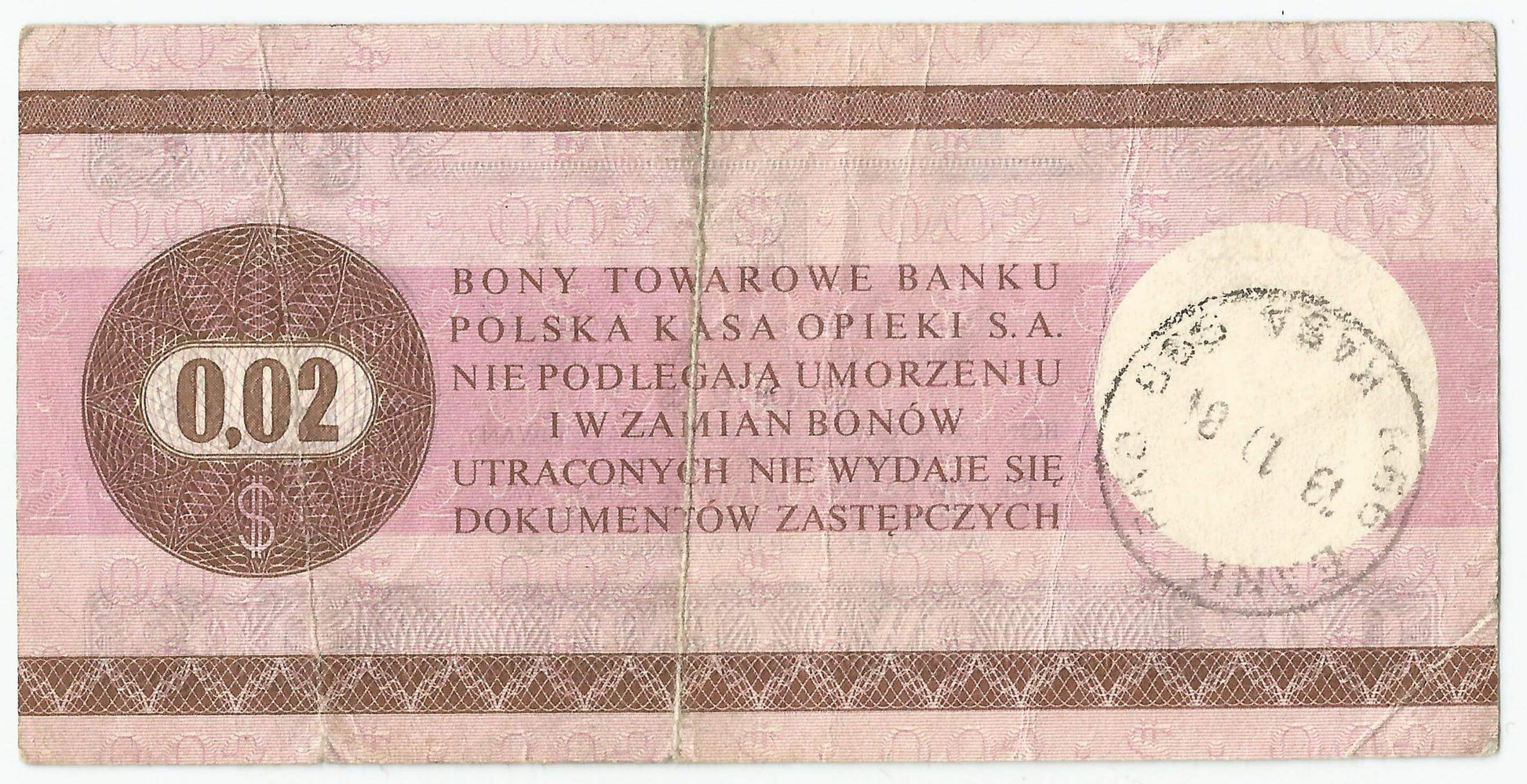 Bon towarowy Pewex 2 centy 1979 stan 3-