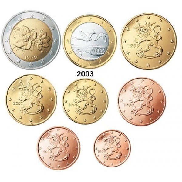 Monety 1, 2, 5, 10, 20 i 50 centów: na monetach tych przedstawiony jest heraldyczny lew, będący reprodukcją projektu rzeźbiarza Heikki Häiväoja. Różne wersje motywu lwa heraldycznego były wielokrotnie wykorzystywane jako motyw fińskich monet, na przykład na monecie jednomarkowej (1 marka fińska) z lat 1964-2001.