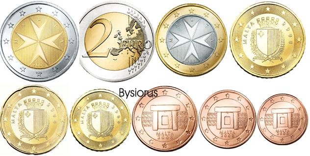 Na monetach 1 € i 2 € widnieje symbol Suwerennego Zakonu Kawalerów Maltańskich, którzy w latach 1530-1798 sprawowali panowanie nad wyspą. W tym okresie krzyż ten zaczął być kojarzony z Maltą, a dziś często określany jest mianem krzyża maltańskiego.