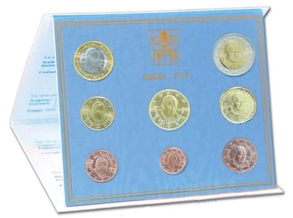 Świątobliwość Benedykta XVI oraz napis „CITTÀ DEL VATICANO”. Po prawej