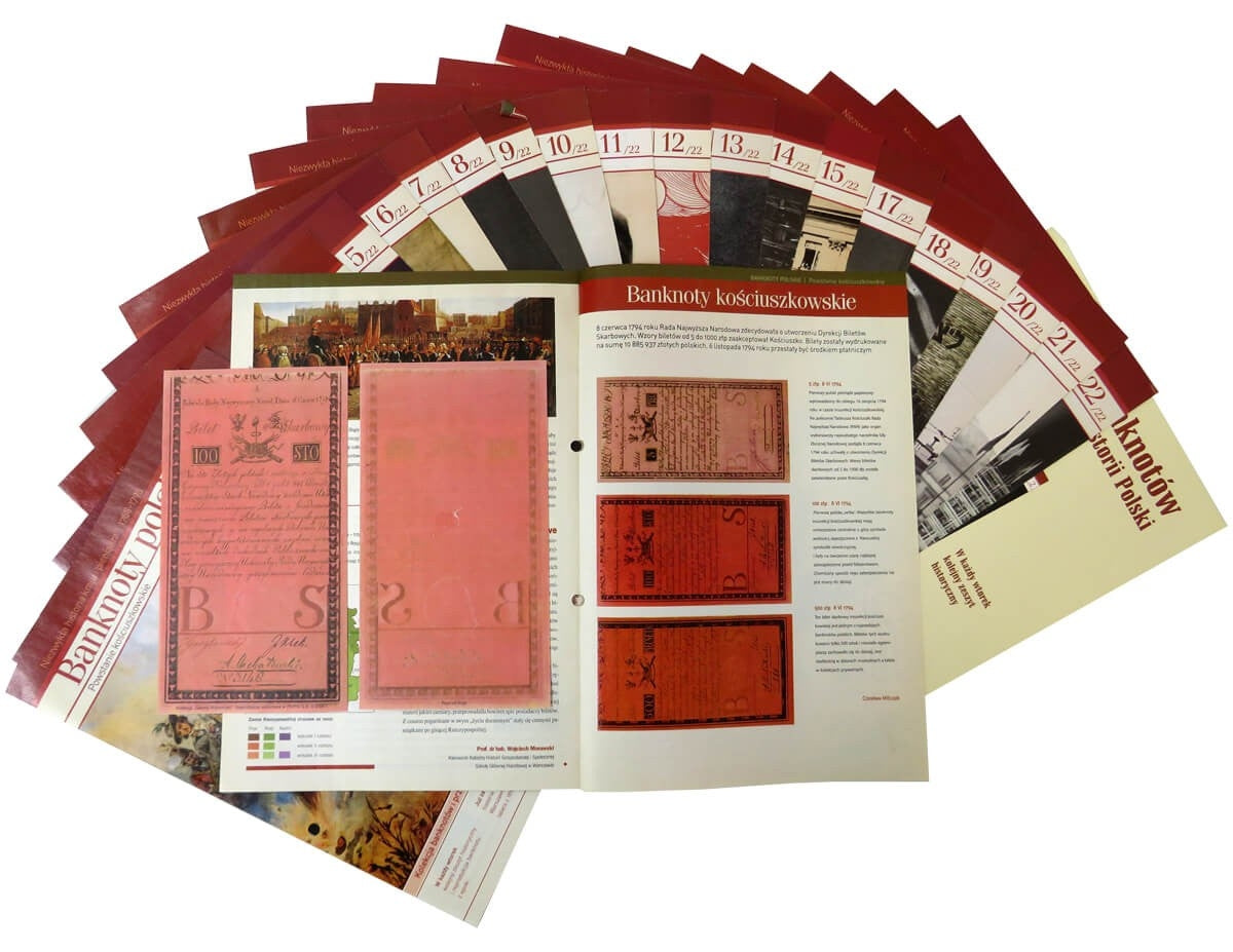 Zestaw 21 reprintów / reprodukcji rzadkich polskich banknotów obiegowych w etui